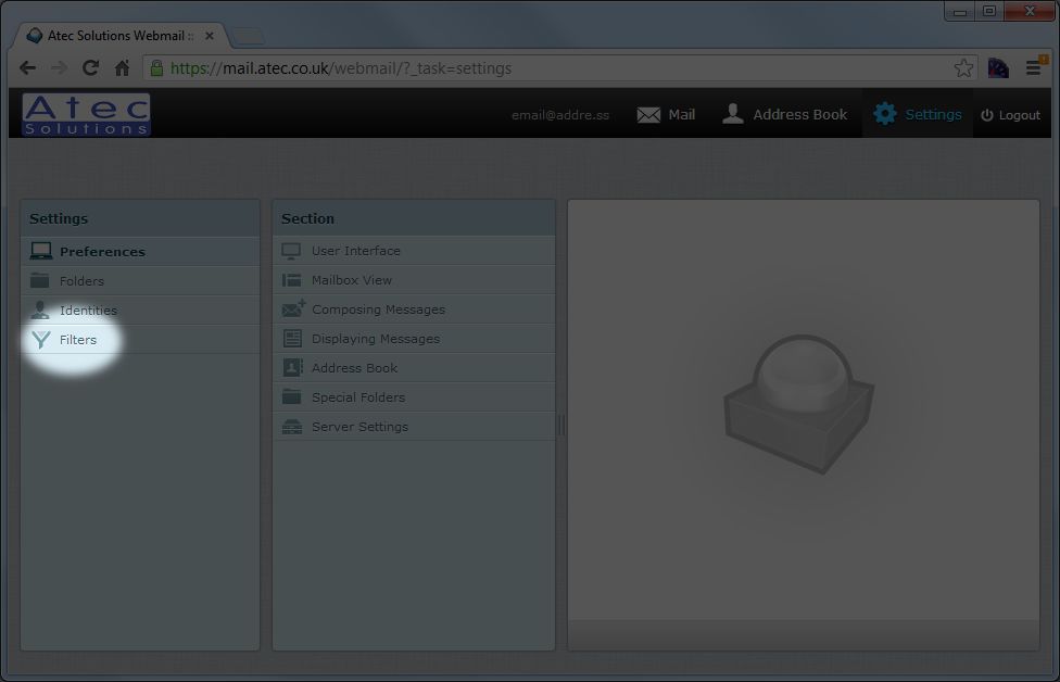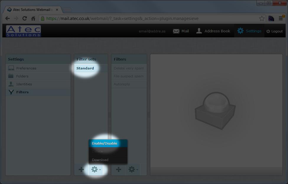 Click on Settings (top-right corner) then Filters (left hand menu, last item)